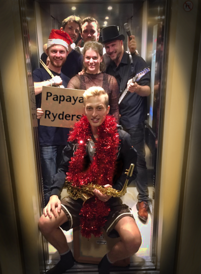 The Papaya Ryders love to interpret rock, blues, and indie classics and shape their sound spectrum with drums, bass, guitar, and vocals - refined with a breeze of sax! The German-Italian-Austrian Ryders have their roots in the catacombs of the Munich student residences and are now sipping their Papaya Colada in the sun.